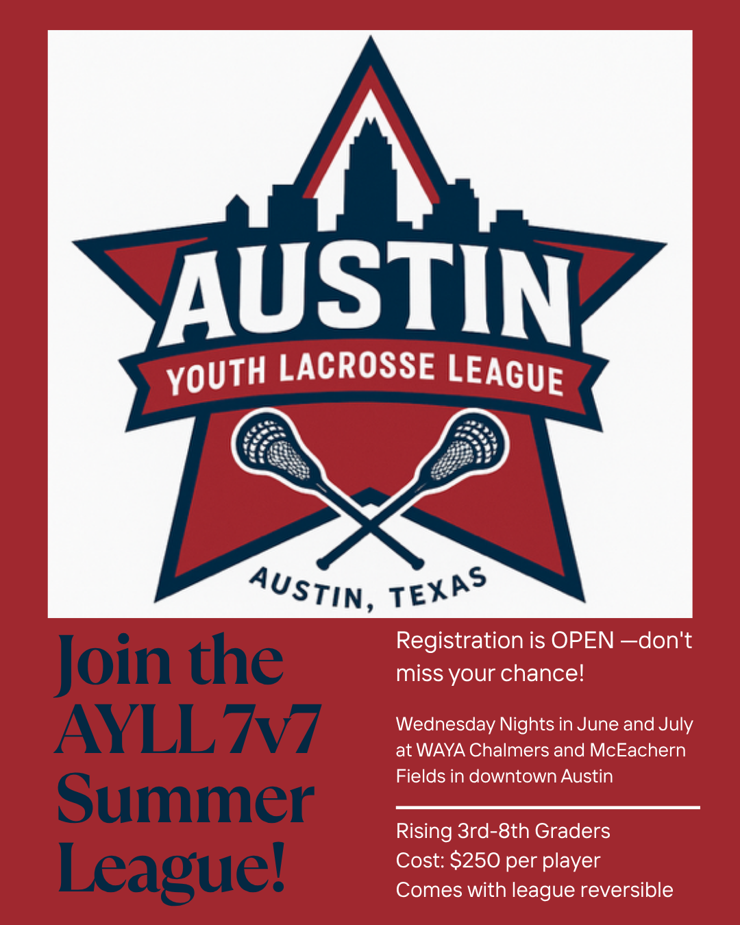 AYLL will be hosting its 1st annual 7v7 Summer League. This league will give boys throughout Austin (in ANY rec. program) the opportunity to play and develop in a fun, fast-paced environment. The goal is to schedule 6 games for every team, one game per week. Weather cancellations may occur and we will use best efforts to schedule make-up games.